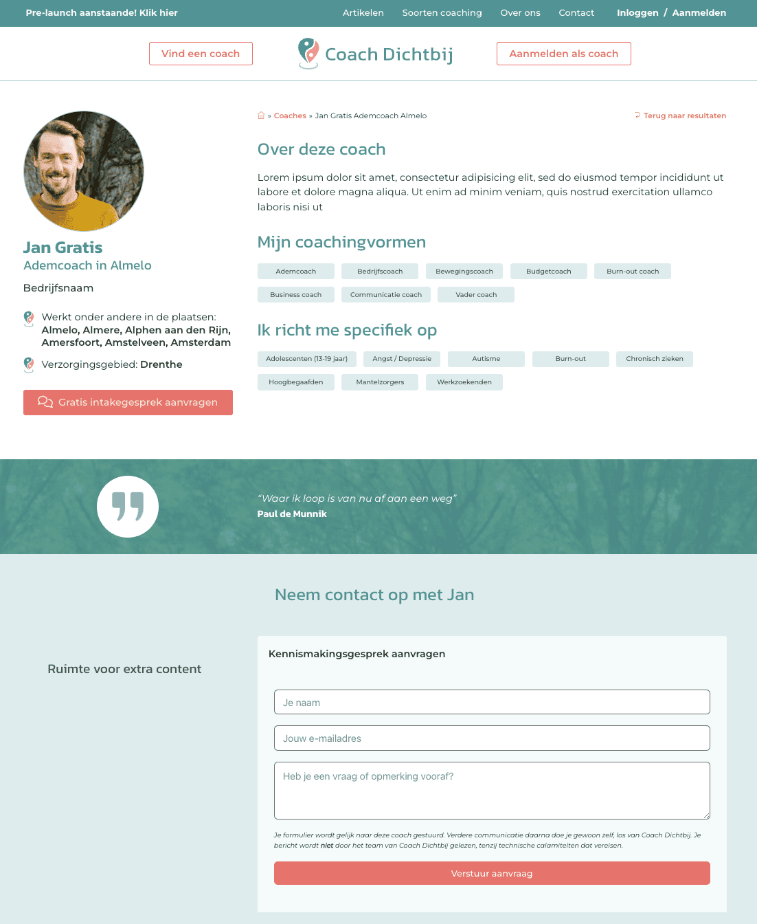 Makkelijker bereikbaar dankzij directe contactopties voor snel contact met potentiële klanten.Beter gevonden worden op Coach Dichtbij - dus meer klantaanvragen